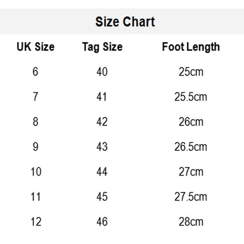 UK Size: 6, 7, 8, 9, 10, 11, 12