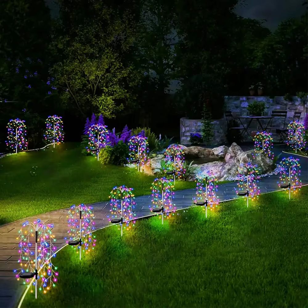 The 1PC Solar Firecracker Fireworks Garden Light is a stunning addition that brings vibrant color and versatility. Featuring 100 LEDs and 8 unique lighting modes, it effortlessly transforms patios, gardens, and pathways into festive displays.
