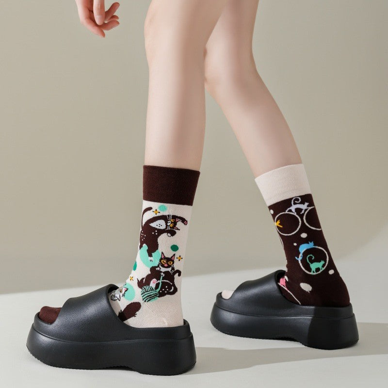 These trendy AB style socks are designed using a second-generation jacquard weaving process, ensuring both quality and style. With a regular thickness, they provide comfort while maintaining a fashionable look, suitable for various occasions.