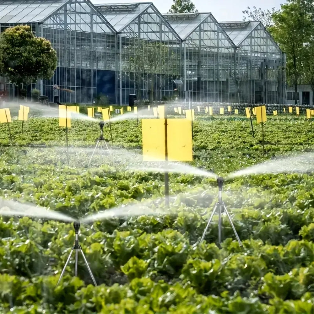 The tripod features an adjustable height and coverage area, allowing precise control over spray direction and intensity. Whether targeting specific plants or covering larger spaces, it adapts easily to different needs and offers a customizable watering experience.