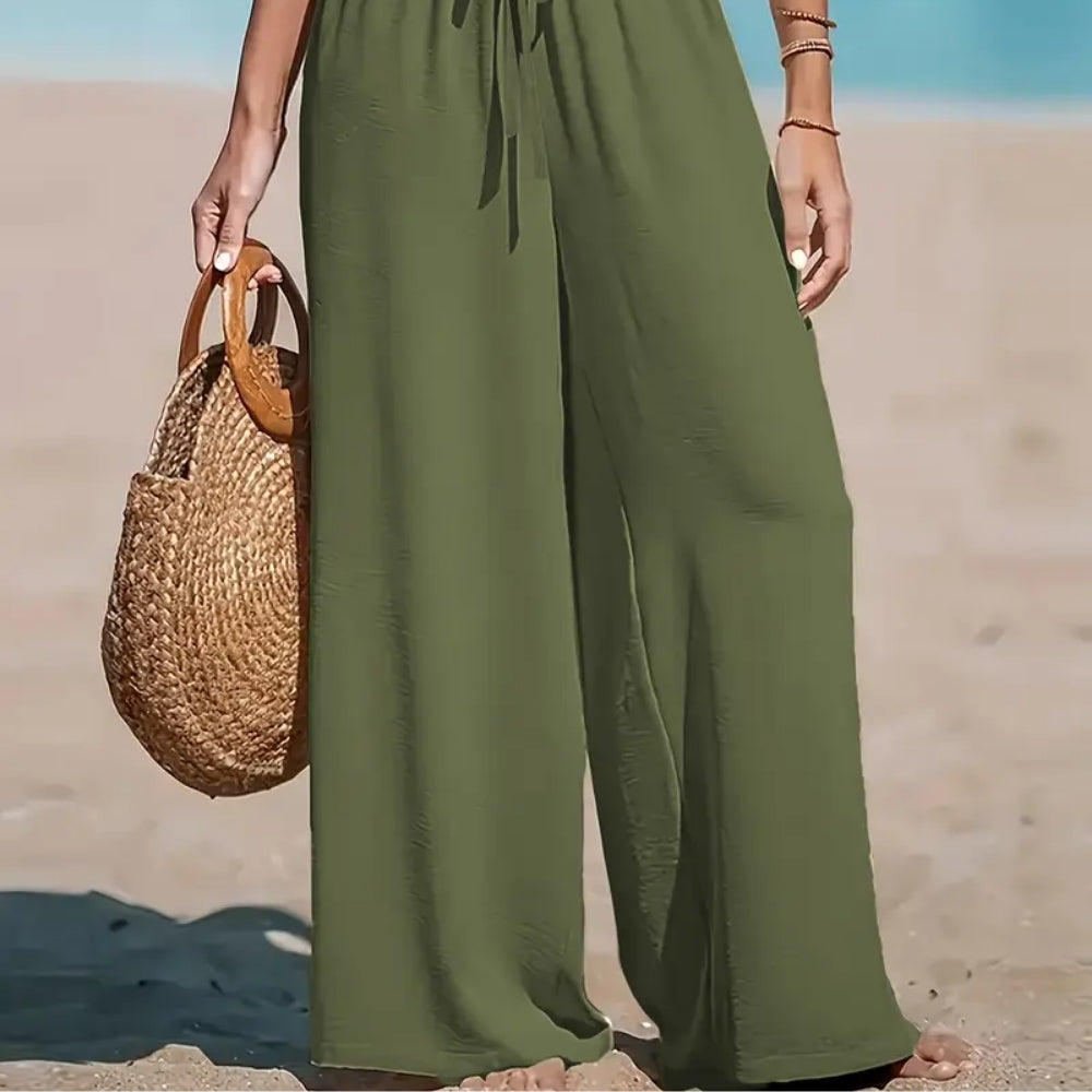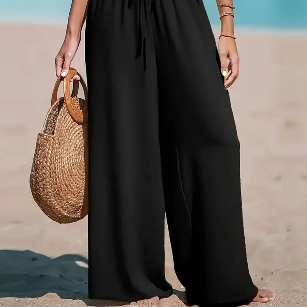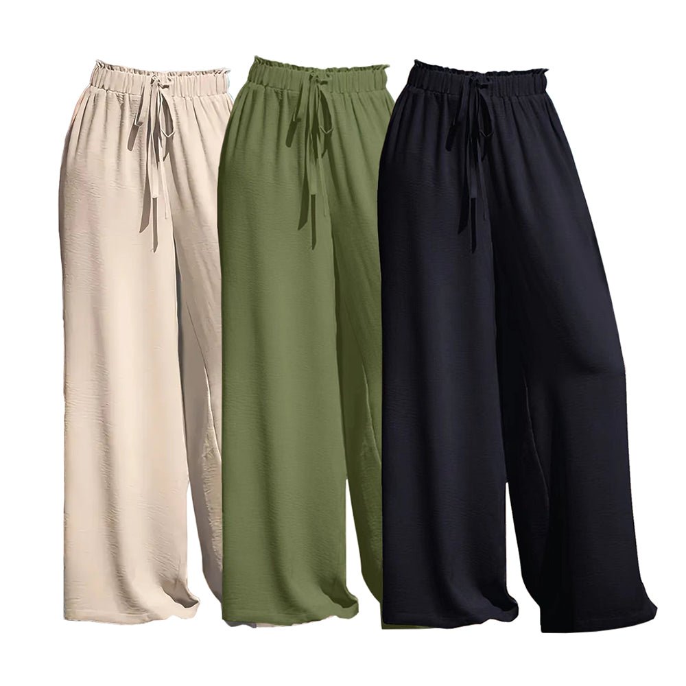 3pcs Women Wide Leg Pants High Waist Flowy Beach Trousers