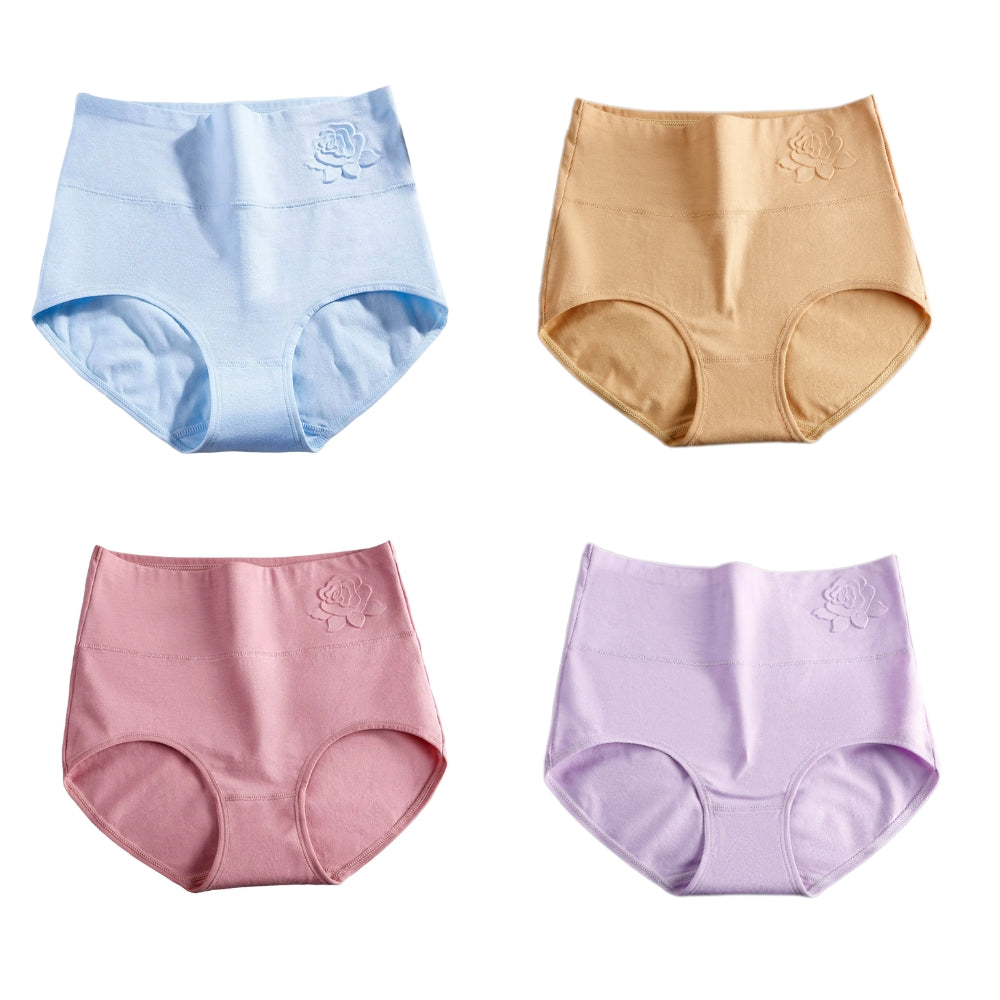 4 or 8 Pack of Women Embossing High Waist abdomen Panties