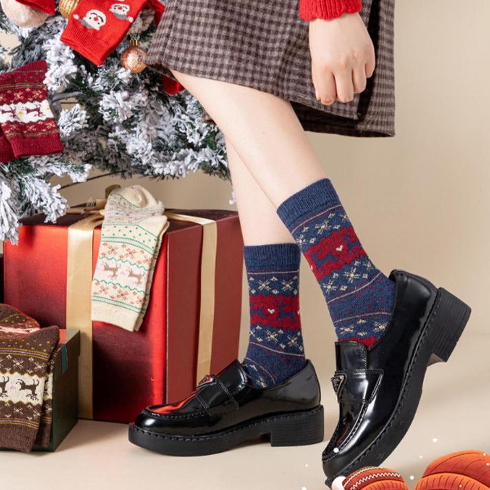 5 Pcs Christmas Socks Wool Socks Mid Tube Socks Fun With Santa Reindeer Pattern Women's Christmas Theme Gift Set Box