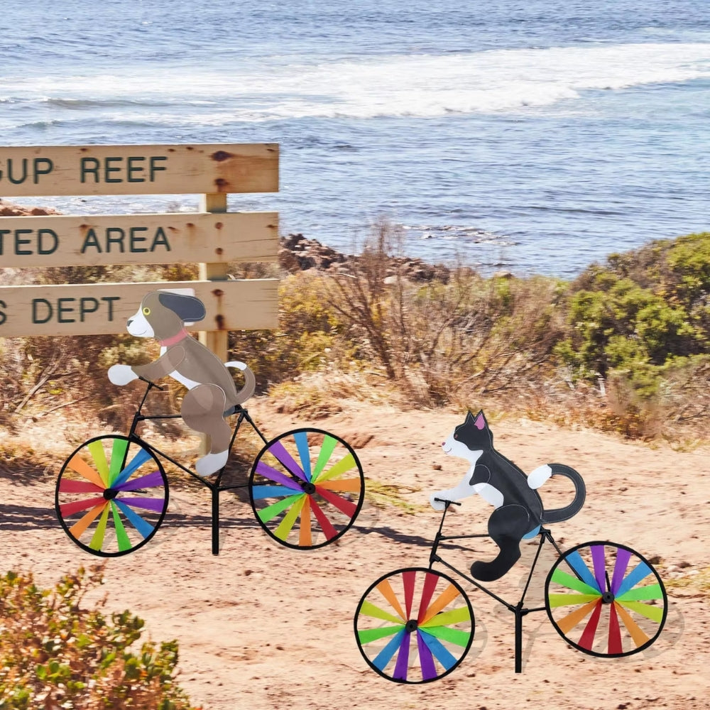 The Creative Bicycle Wind Spinner Garden Decoration is a charming and whimsical piece that brings life and character to any outdoor space. Featuring adorable animals like frogs, rabbits, and cats riding a bicycle, it captures a carefree summer moment straight out of a storybook.