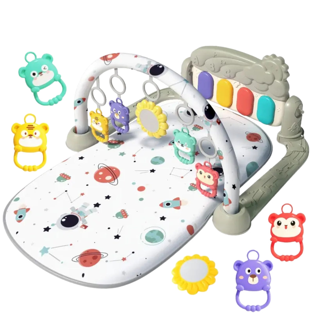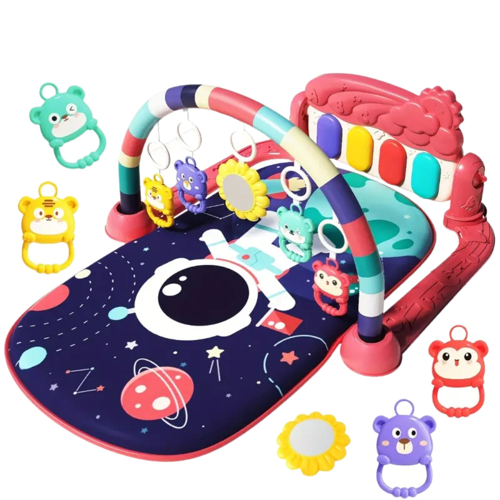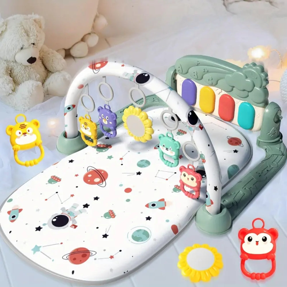 This baby pedal piano mat combines entertainment and early development in one multifunctional activity center. Designed for infants aged 0–12 months, it encourages crawling, grasping, and sensory exploration through interactive play.