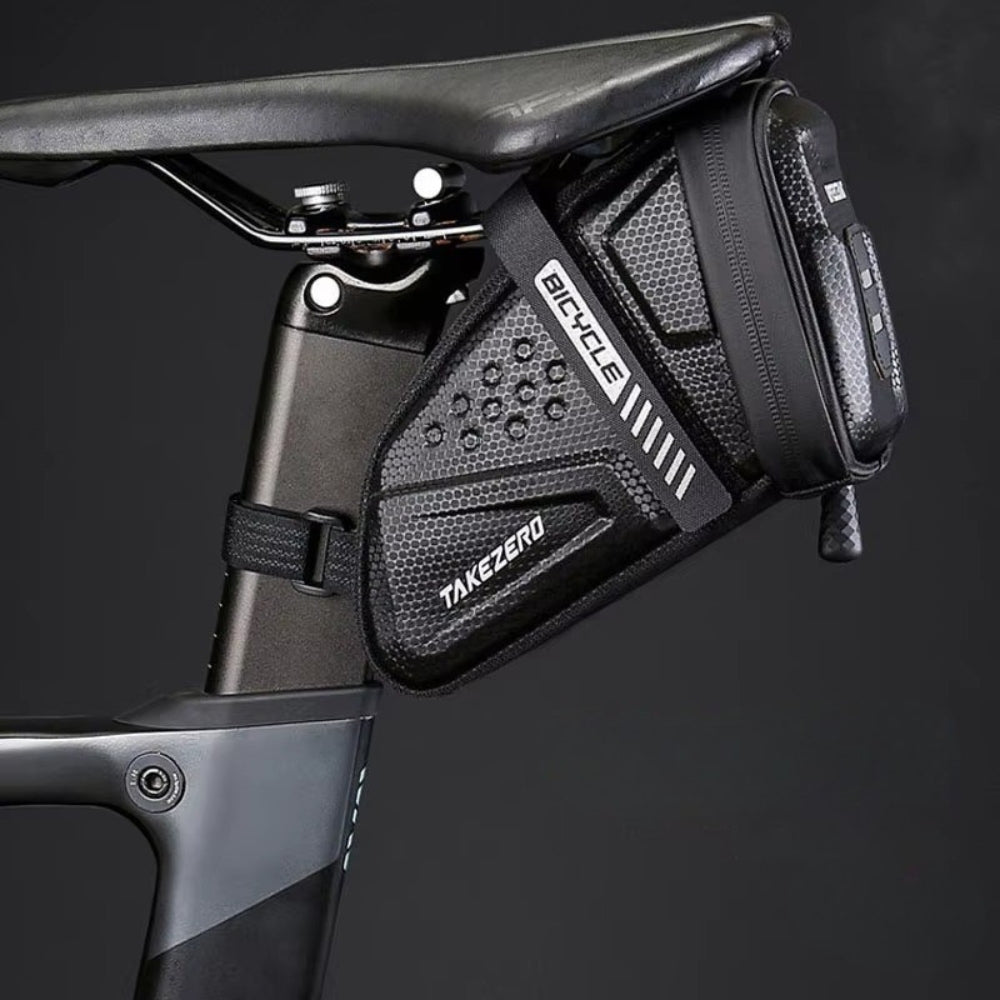 The bike saddle bag offers ample storage capacity, allowing you to conveniently carry essential items such as tools, spare tires, and air pumps. With enough room for all your on-the-go necessities, you’ll never have to leave anything behind, making your ride hassle-free and well-prepared.