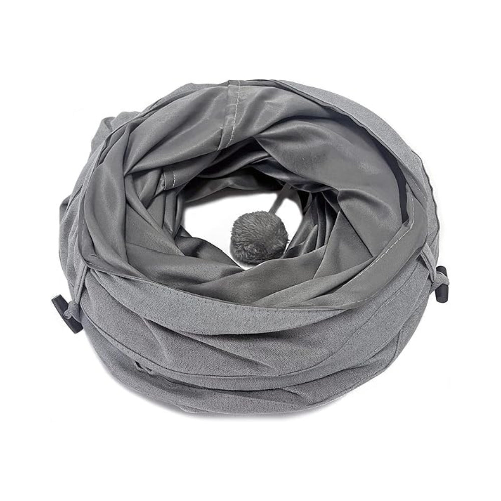 The tunnel is designed to be collapsible, enabling compact storage and easy carrying. It can be easily folded down and stored when not in use. This feature makes it convenient to take the tunnel anywhere, aiming to prevent pets from becoming bored.