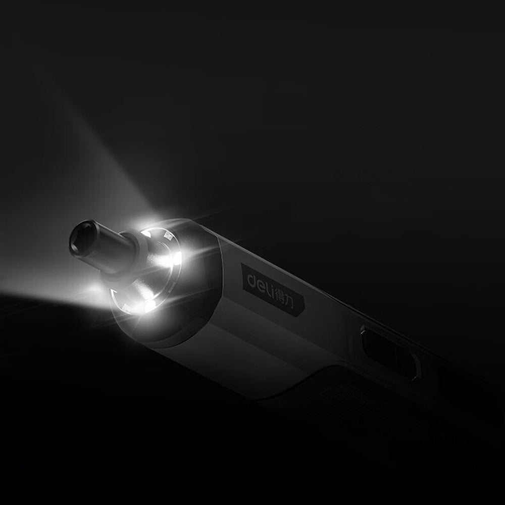 The screwdriver features a dual-use design, allowing for both electric and manual operation. Its dual LED lighting automatically activates, providing visibility in dark areas, so you can work efficiently no matter the lighting conditions.