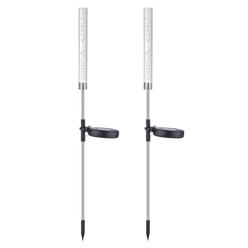 Features color-changing RGB LED lights decorated with suspended bubbles to add a touch of enchanting beauty to any outdoor garden, lawn or yard area.