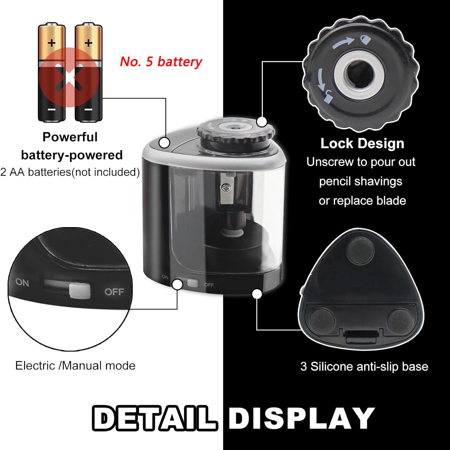 This desktop electric pencil sharpener offers dual power modes, featuring both a battery-powered electric mode and a manual backup option. This ensures uninterrupted sharpening, making it a reliable tool for students and professionals alike.
